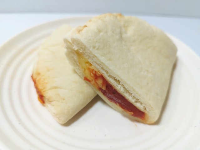 中には完熟トマトのソースモッツァレラチーズが入っています。