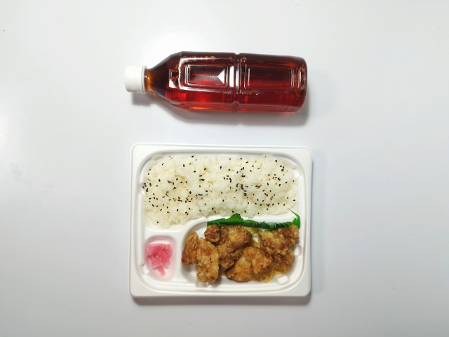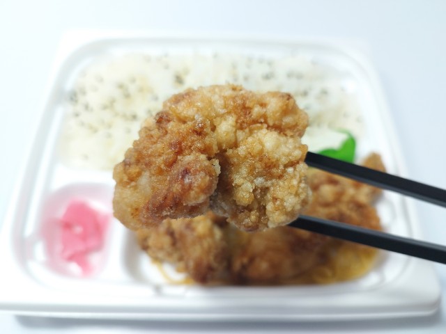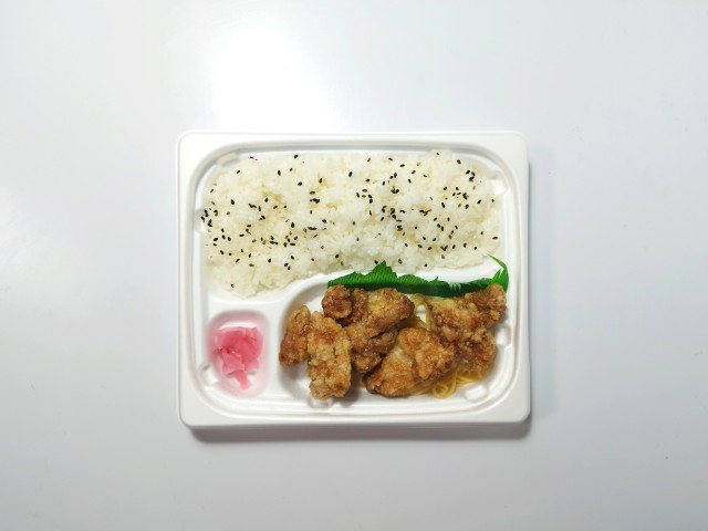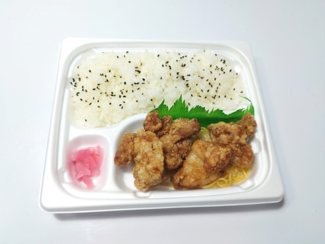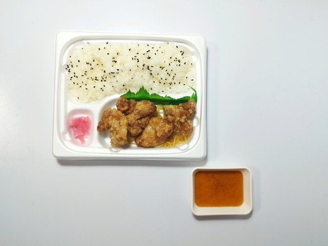 しょうがや醤油などで味付けをしたジューシーなタツタ揚げ弁当です。ゆずおろしポン酢をかけてさっぱりと食べられる仕立てです。
