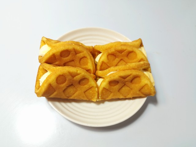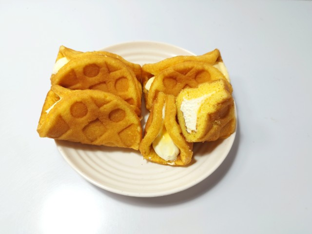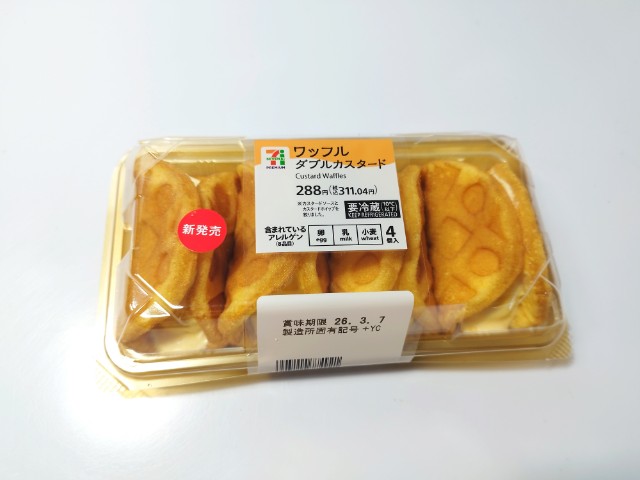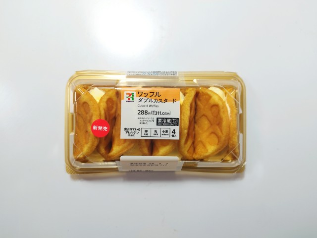 セブンイレブンの商品「7プレミアム ワッフルダブルカスタード 4個入」を食べてみました。