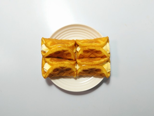 ふんわり口どけ良く仕上げたワッフル生地で、カスタードホイップと濃厚なカスタードソースを包みました。
