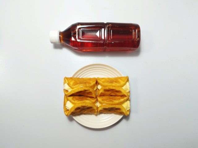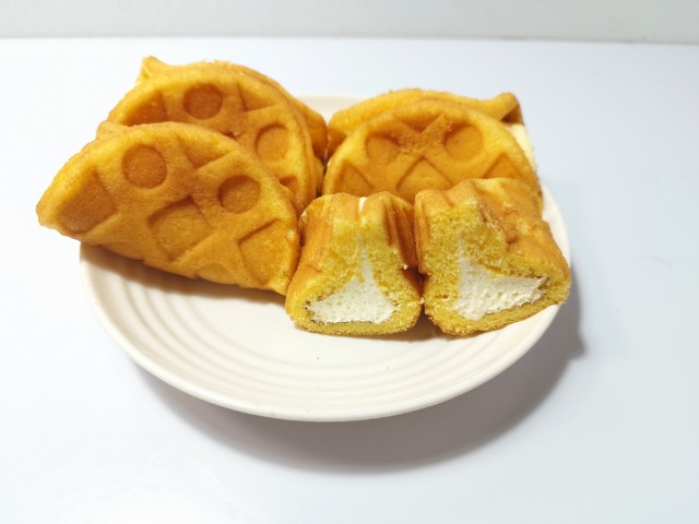 カスタードホイップとカスタードソースを使ったワッフルです。以前に7プレミアム ワッフルりんご&ホイップカスタード4個(2026年1月13日発売)や7プレミアム ワッフルホイップカスタード4個(2025年7月15日発売)がありましたが、今回はダブルカスタードになっています。そんなワッフルですが、生地はふんわりとした食感とたまごの風味があって、カスタードソースこれだけでも美味しく食べ進められます。カスタードホイップはなめらかな食感とほどよい甘味、カスタードソースはとろりとした食感と濃厚なカスタードの味わいで、ワッフル生地とのバランスも良いです。4個入ですが、1個がふた口サイズくらいなので、一人でも普通に食べ切れます。もちろんシェアするにもピッタリです。ぜひワッフルダブルカスタードを食べてみてください。