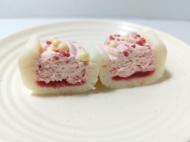 生地の間にはいちごソースといちごミルクホイップが挟まっています。