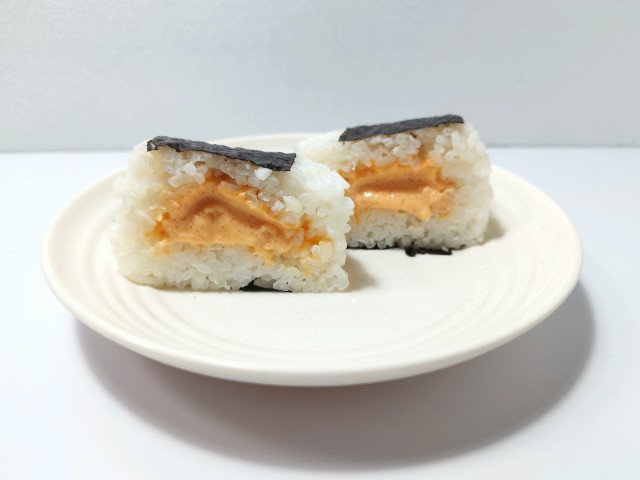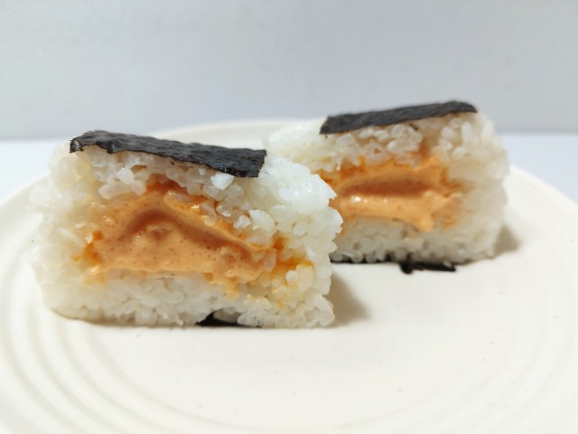 明太子マヨネーズのおむすびです。定番人気のおむすびでもある直巻 明太子マヨネーズ(2025年11月18日発売)ですが、今回は期間限定にて中具が増量されて発売されています。そんなおむすびですが、明太子マヨネーズは明太子の旨味とマヨネーズの酸味があって、ご飯が進む一品になっています。ふっくら食感のご飯と海苔のバランスも良く、最後のひと口まで美味しく食べられます。また、今回は明太子マヨネーズが増量されている事もあって、さらに満足度も高いと思います。大きさは普通のおむすびサイズで、小腹が空いた時や主食にあと一品追加したい時にピッタリです。ぜひ増量された明太子マヨネーズのおむすびを食べてみてください。