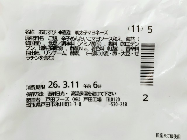 ファミリーマートの今週の新商品「増量 直巻 明太子マヨネーズ」を食べてみました。