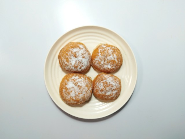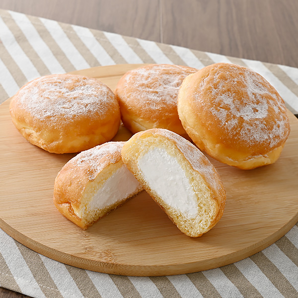 ふんわりとした生地に、ホイップクリームを注入して粉糖掛けした、ドーナツの4個入りです。