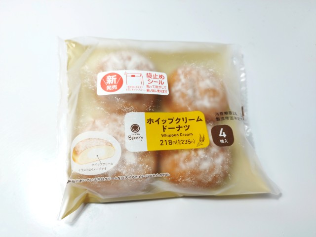 ファミリーマートの商品「ホイップクリームドーナツ4個入」を食べてみました。