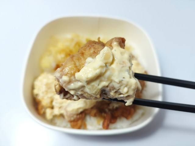 セブンイレブンの今週の新商品「タルタルソースで食べる 唐揚げ丼」を食べてみました。