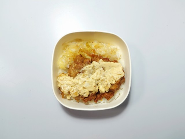 ジューシーな唐揚げに、たっぷりのタルタルソースを合わせた唐揚げ丼です。