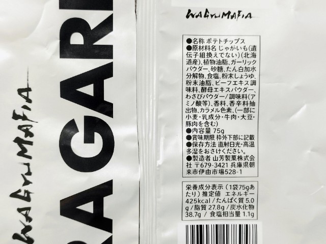 WAGYUMAFIAとコラボしたポテトチップスです。以前の購入が2025年2月18日発売だったので、1年以上経っていますが、価格が198円(税込213円)から216円(税込233円)に変わっています。そんなポテトチップスですが、パリパリとした食感とビーフの旨味、ガーリックの味わいがあって、食べ出すと止まらなくなる美味しさです。ウルトラガーリックの商品名の通り、食べている最中に口の中が麻痺するくらいにんにくがしっかりと効いているので、食べた後に人に会う場合はマスク着用をオススメします。内容量は一人分にちょうどよく、おやつやおつまみにピッタリです。ぜひULTRA GARLICのポテトチップスを食べてみてください。