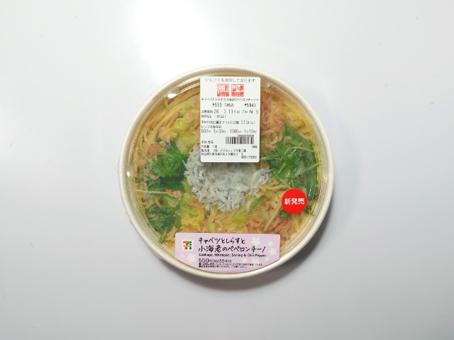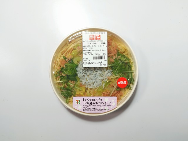 セブンイレブンの今週の新商品「キャベツとしらすと小海老のペペロンチーノ」を食べてみました。