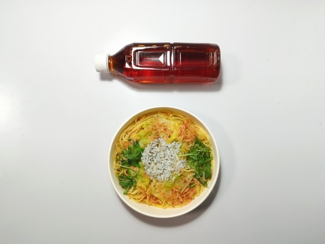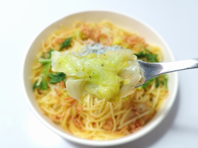 キャベツとしらすと小海老のペペロンチーノを美味しくいただきますっ!!