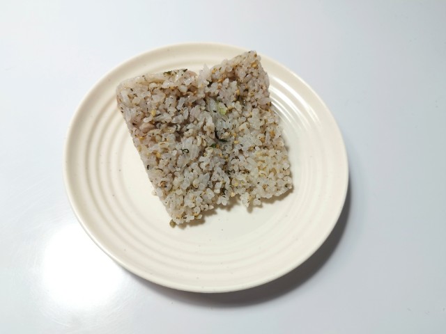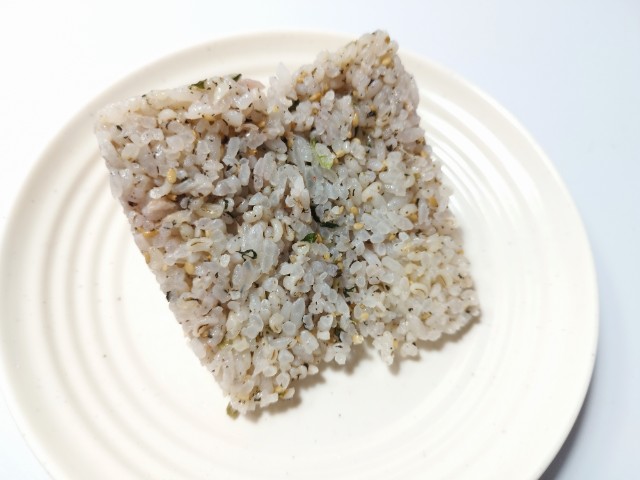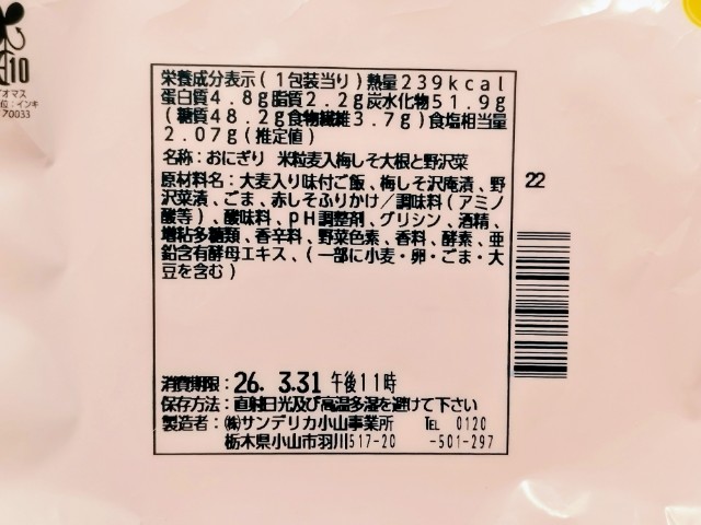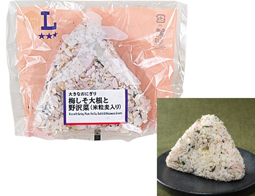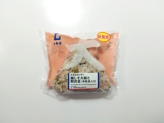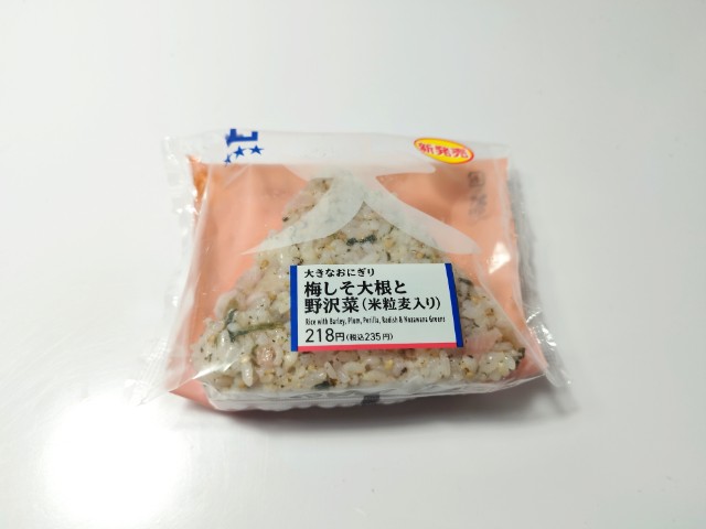 ローソンの商品「大きなおにぎり 梅しそ大根と野沢菜(米粒麦入り)」を食べてみました。