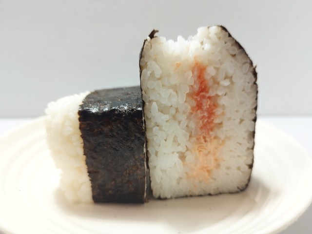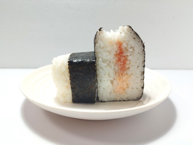 明太子鮭マヨネーズが入った大きなおむすびです。同様の商品として、以前に大きなおむすび 鮭マヨネーズと生たらこ(2025年12月9日発売)がありましたが、今回は生たらこ明太子になっています。そんな大きなおむすびですが、中の具材には明太子鮭マヨネーズが使われていて、明太子明太子の旨味ピリッとした辛味鮭マヨネーズだしの風味マヨネーズのなめらかな味わいで、相性抜群の組み合わせになっています。見た目以上にしっかりとした味わい中具になっているので、食べた後の満足度も高いです。定番手巻おむすびの約1.5倍というだけあって、しっかりと大きさがあるので、おむすび1個でお腹も軽く満たされると思います。ぜひ明太子と鮭マヨネーズ大きなおむすびを食べてみてください。
