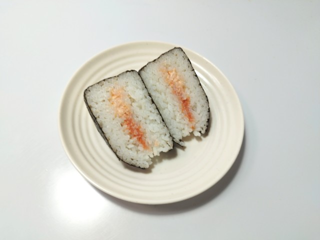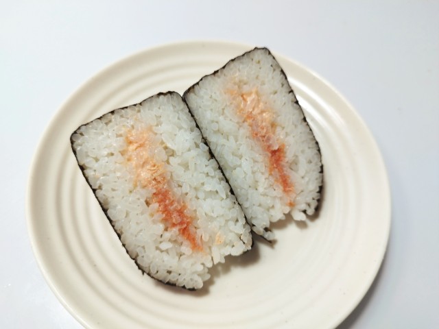 明太子と鮭マヨネーズ大きなおむすびを美味しくいただきますっ!!