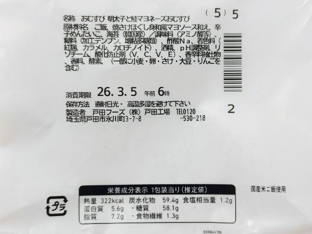 中には明太子鮭マヨネーズが入っています。