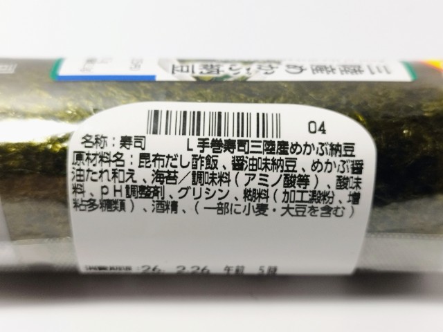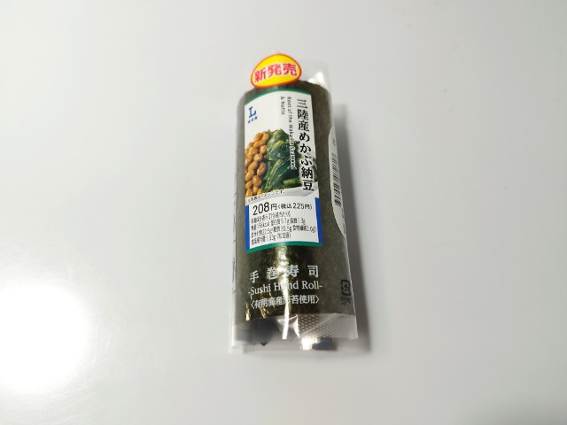 ローソンの商品「手巻寿司 三陸産めかぶ納豆」を食べてみました。