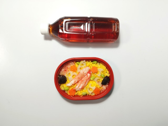 錦糸玉子やカニカマ、花形人参などがのったお弁当です。彩りの良さに惹かれて買ってみました。そんなお弁当ですが、酢飯にはごぼうや人参、油揚げ、椎茸などが混ぜ込まれていて、だしの風味とほどよい酸味、食材の豊かな味わいを楽しむことができます。酢飯の上には錦糸玉子やカニカマ、花形人参、れんこん、枝豆、おぼろなどがのっていて、鮮やかな見た目で食欲をかき立ててくれます。特にカニカマのしっとりとした食感とほのかな甘味、錦糸玉子のたまごの風味とやさしい味わいは酢飯とよく合っていて、最後のひと口まで美味しく食べられます。全体的にさっぱりとした味わいと色々な食材の味を楽しめるので、老若男女問わず幅広い年齢層に受けるお弁当だと思います。また、個人的にはここにお吸い物をつけると完璧なランチになると思いました。ミニ弁当なので内容量は多くありませんが、小腹が空いた時や軽く済ませたい時などにピッタリです。ぜひ春の彩りちらし寿司を食べてみてください。