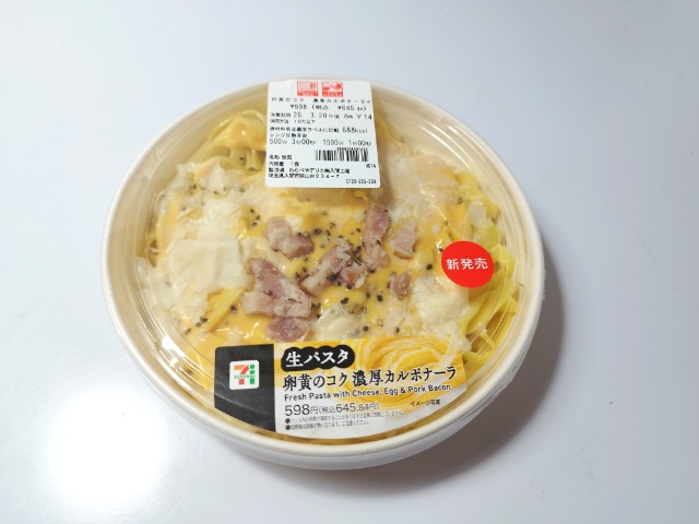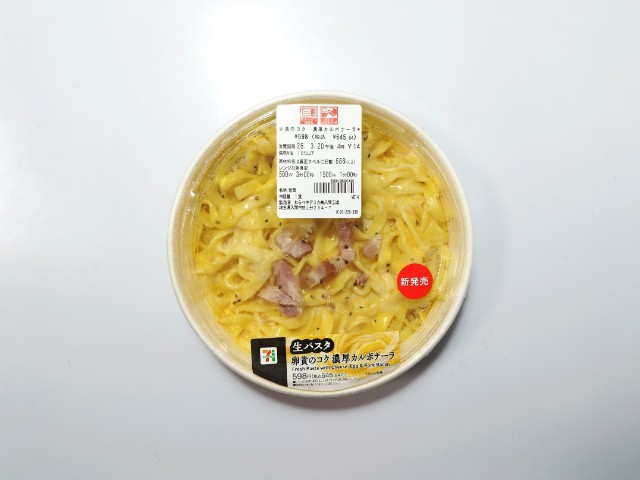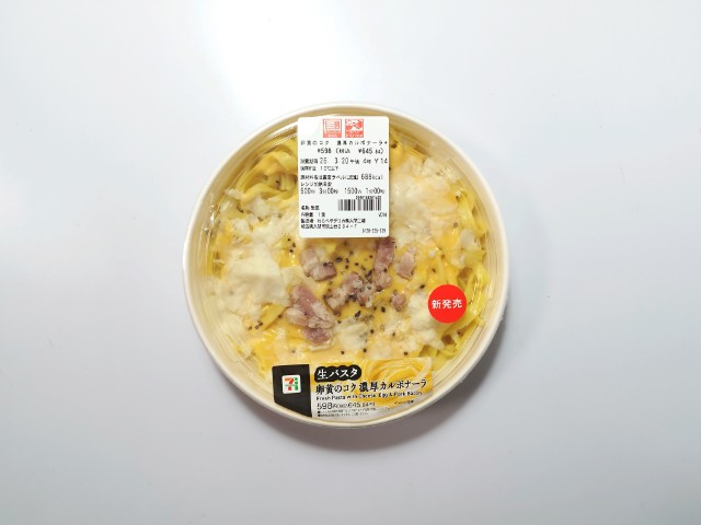 セブンイレブンの今週の新商品「生パスタ 卵黄のコク濃厚カルボナーラ」を食べてみました。