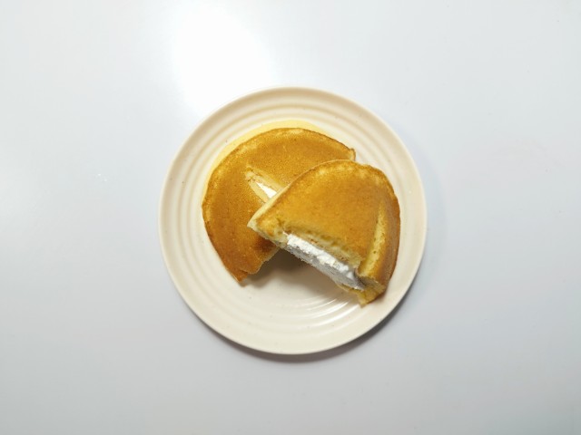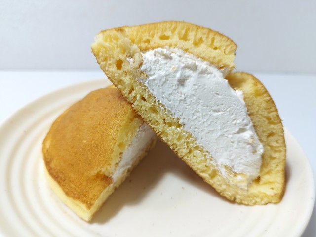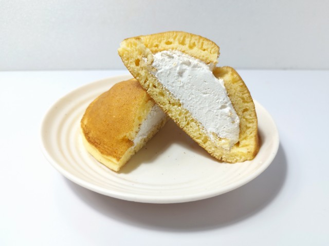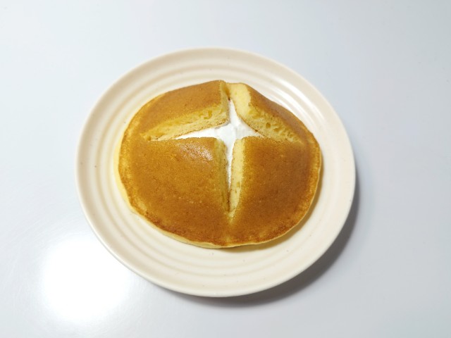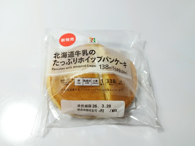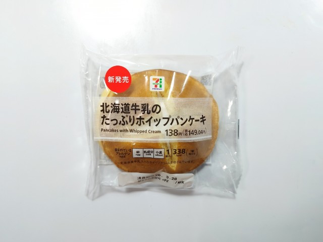 セブンイレブンの今週の新商品「北海道牛乳のたっぷりホイップパンケーキ1個入」を食べてみました。