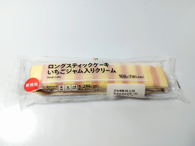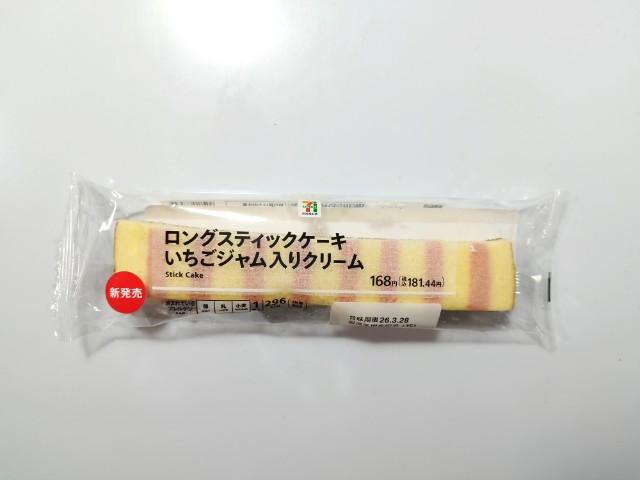 セブンイレブンの今週の新商品「ロングスティックケーキいちごジャムクリーム」を食べてみました。