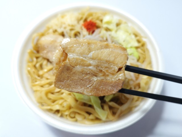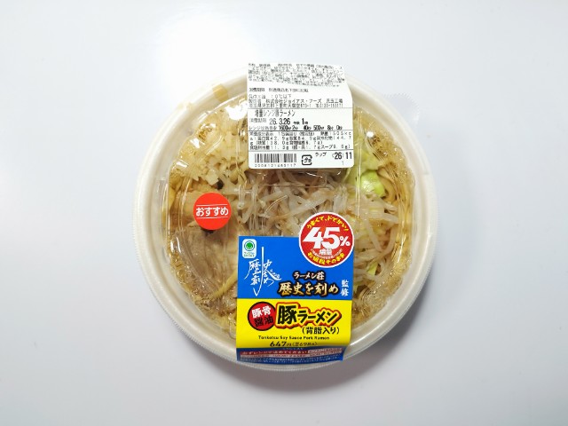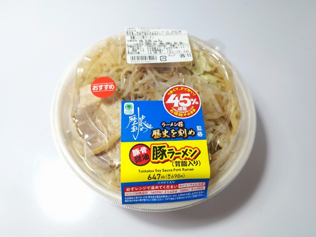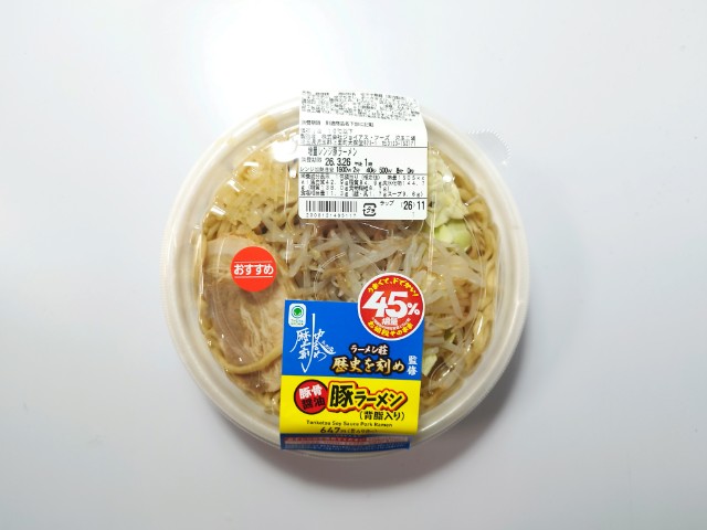 ファミリーマートの今週の新商品「【なぜか45%増量作戦】ラーメン荘 歴史を刻め監修 豚ラーメン」を食べてみました。