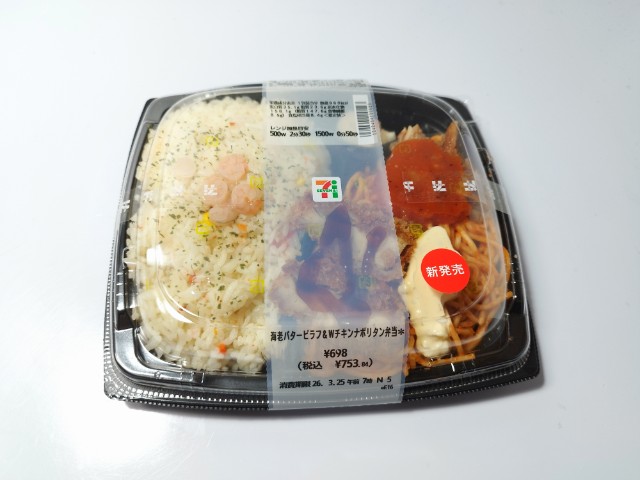 セブンイレブンの今週の新商品「海老バターピラフ&Wチキンナポリタン弁当」を食べてみました。
