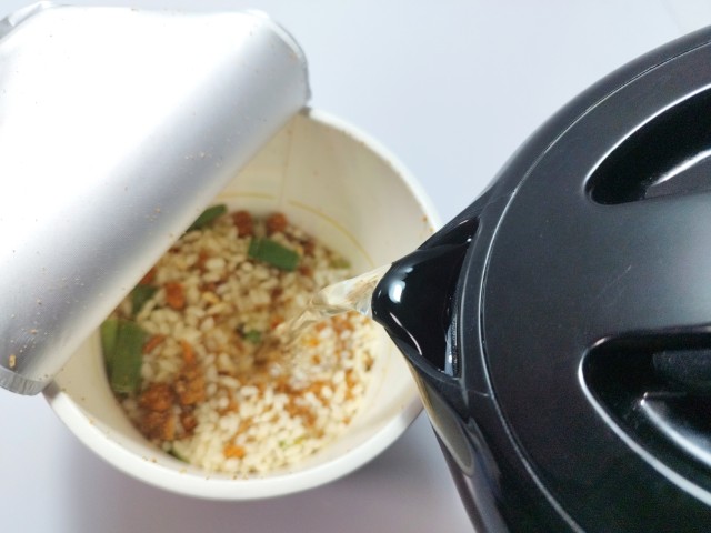 お湯を入れて、フタをして5分待ちます。