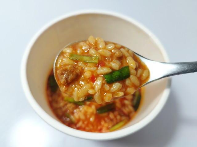味仙本店監修したぶっこみ飯台湾ラーメン味です。ファミリーマートだとほぼ通年販売でもあるカップ麺味仙本店監修 台湾ラーメンが有名ですが、今回はぶっこみ飯が登場したので、さっそく買ってみました。そんなぶっこみ飯ですが、スープ醤油の風味豚のコクにんにくの旨味で、ハマってしまう美味しさです。ご飯スープをしっかりと吸っていて、ひと口食べるごとに旨味があふれてきます。具材には味付肉そぼろフライドガーリックにらなどが入っていて、それぞれの味や食感を楽しめます。ちなみに辛さレベル5段階中4となっているので、当然ながら辛いですが、カップ麺味仙本店監修 台湾ラーメンと比べるとそこまで辛さを感じないかもしれません。内容量は一人分にちょうどよく、小腹が空いた時カップ麺味仙本店監修 台湾ラーメンに合わせてもピッタリだと思います。ぜひぶっこみ飯台湾ラーメン味を食べてみてください。