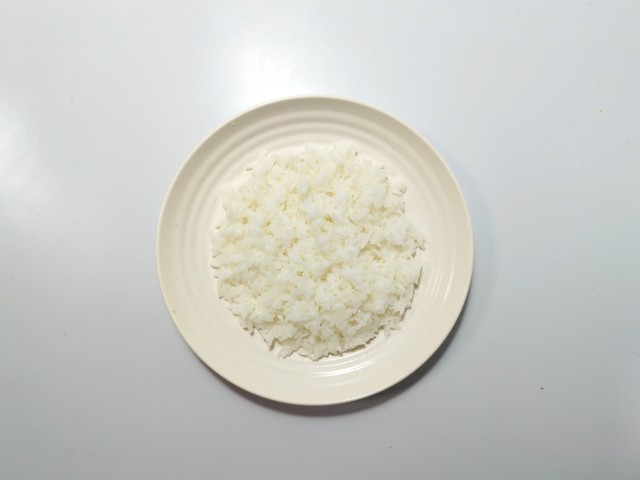 温めたご飯を皿に盛って、