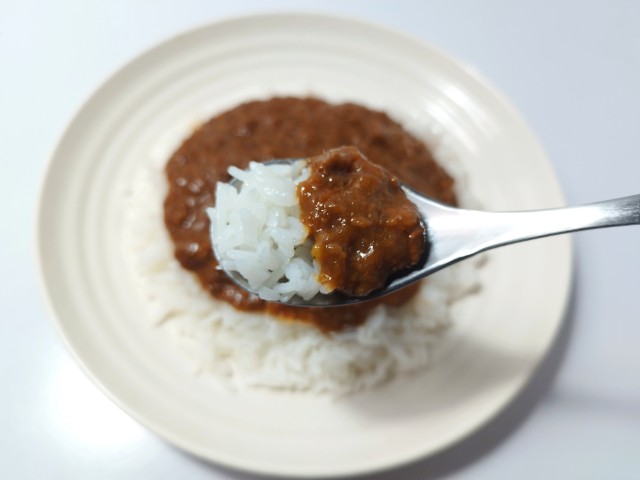 レトルト食品のキーマカレーです。ほぼ通年販売の商品なので、店頭で見かけたり、食べたことがある方も多いと思います。今回、新商品ではありますが、正確にはリニューアルというのが正しいのかもしれません。そんなキーマカレーですが、肉の旨味とスパイスの風味、玉ねぎのほのかな甘みがあって、ハマってしまう美味しさです。スパイスはしっかりと感じられますが、辛味はそこまでないので、最後のひと口まで美味しく食べられます。今回はそのまま食べましたが、トッピングとして卵黄やチーズをのせても美味しいと思います。内容量は一人分にちょうどよく、お腹も満たされます。ぜひキーマカレーを食べてみてください。