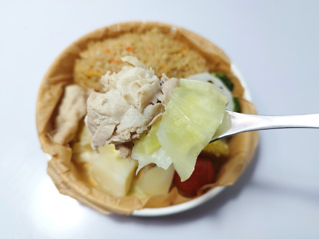 セブンイレブンの商品「蒸し野菜と豚しゃぶのサラダごはん」を食べてみました。