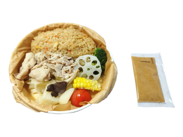 豚しゃぶと蒸し野菜を一緒に食べられるお弁当です。ごまだれをかけてお召し上がりください。