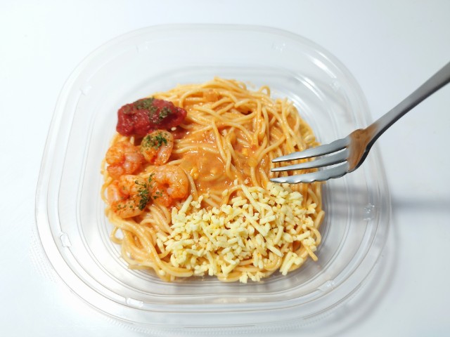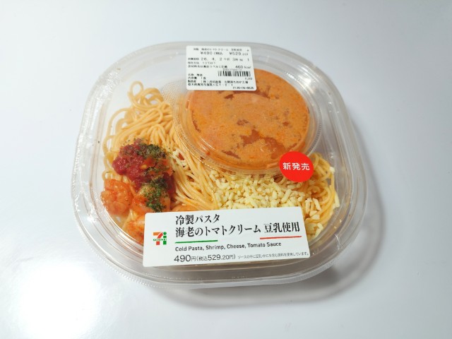 セブンイレブンの商品「冷製パスタ 海老のトマトクリーム」を食べてみました。