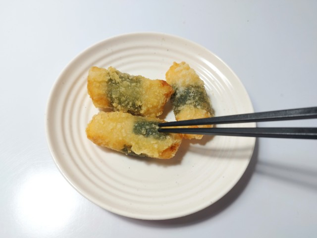 鶏ささみ梅しそ卷です。鶏ささみ大葉を合わせた揚げ物で、その味が気になって買ってみました。そんなささみ梅しそ巻きですが、鶏ささみ鶏の旨味しっとりとした肉質で、安定の美味しさです。鶏ささみを巻いた大葉さわやかな風味があって、鶏ささみの美味しさをさらに引き立てています。鶏ささみの中にある梅肉なめらかな食感梅の酸味で、揚げ物がさっぱりと食べられます。3個入ですが、1個ふた口サイズくらいなので、一人でも普通に食べ切れます。今回はそのまま食べましたが、ご飯のおかずにもピッタリだと思います。ぜひささみ梅しそ巻きを食べてみてください。