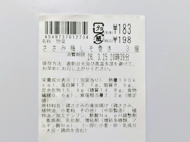 ローソンの今週の新商品「ささみ梅しそ巻き」を食べてみました。
