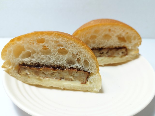 間にはパティと照り焼きソース、マヨネーズが挟まっています。