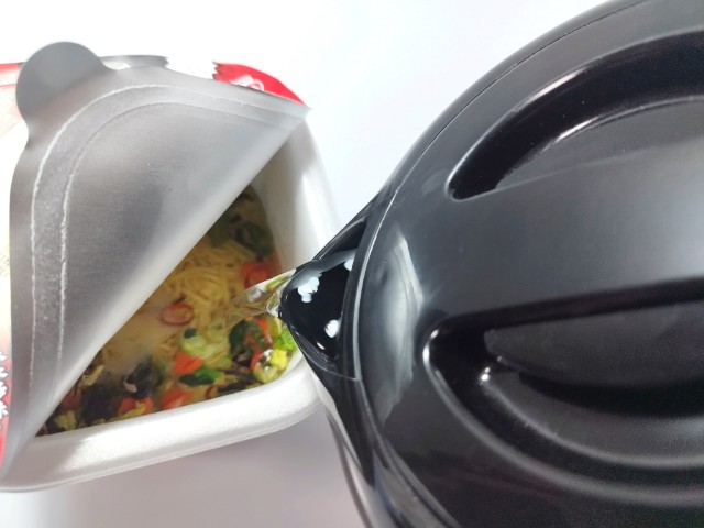 お湯を入れて、フタをして4分待ちます。