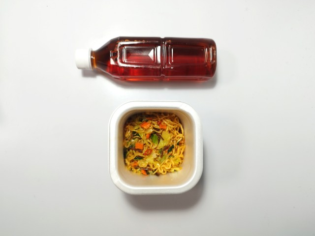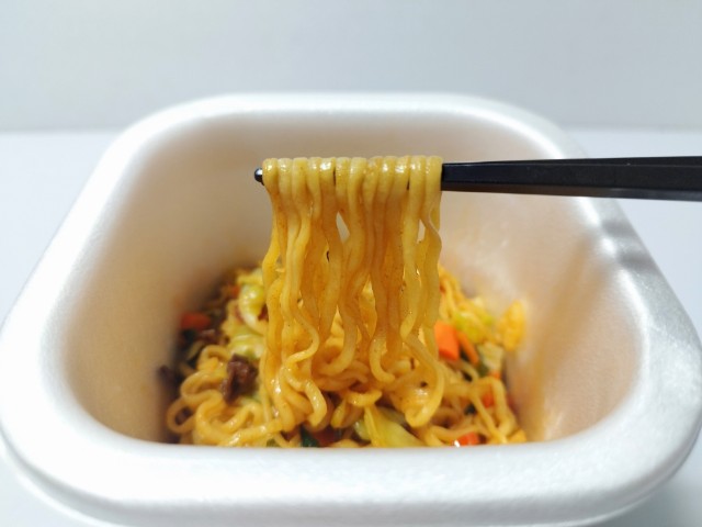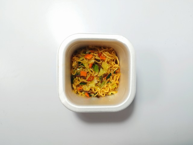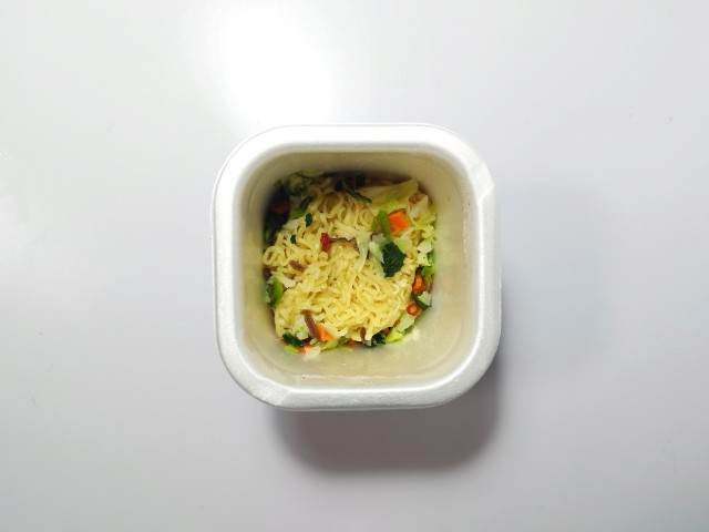4分経ったので、お湯を捨ててフタを開けてみました。