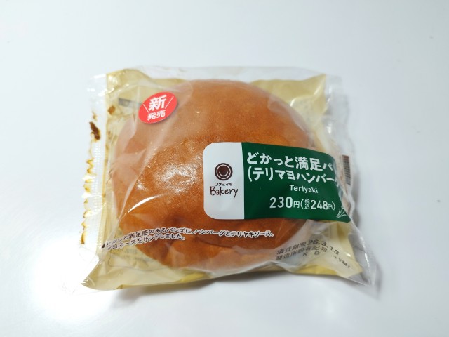 ファミリーマートの商品「どかっと満足パン(テリマヨハンバーグ)」を食べてみました。