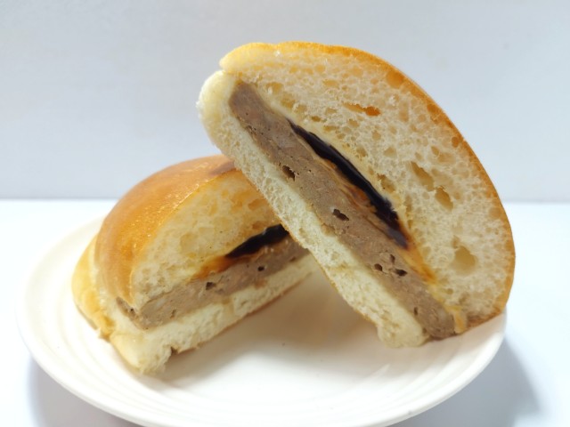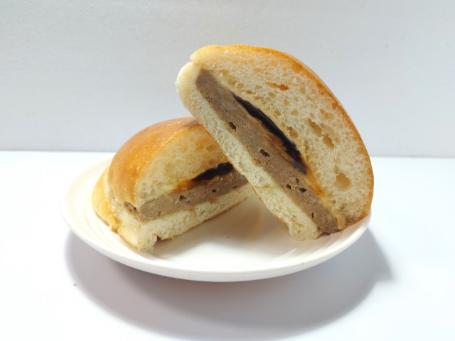 ふんわりとした食感のバンズに、ハンバーグ・てりやきソース・マヨネーズをサンドした、ボリュームのある惣菜パンです。