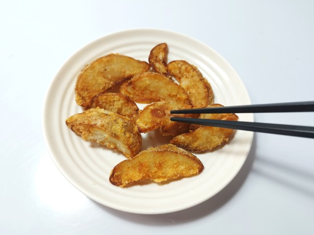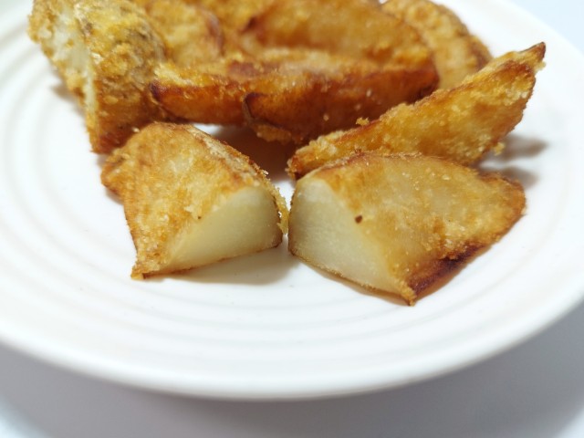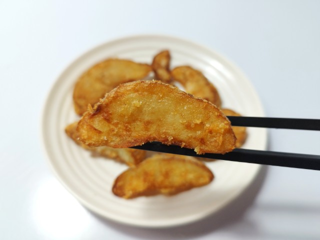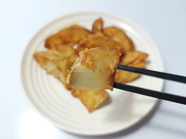 北海道産男爵芋使用のフライドポテトです。ローソンから発売されたレジ横商品で、SNSでも「店員さんにおすすめされて食べたら美味しかった」や「レギュラーメニューにしてほしい」など話題になっているので、さっそく買ってみました。そんな熟ポテトですが、外はカリカリとした食感、中はなめらかな食感、ほどよい塩味があって、ハマってしまう美味しさです。特に中のじゃがいもがホクホクとした食感ではなく、とろとろに近いなめらかな食感なのは普通のフライドポテトでは味わえないと思います。美味しさのあまり、あっという間に食べて終わってしまい、個人的には全然足りませんでした。内容量は一人分にちょうどよく、おやつやおつまみにおすすめです。ぜひ熟ポテトを食べてみてください。