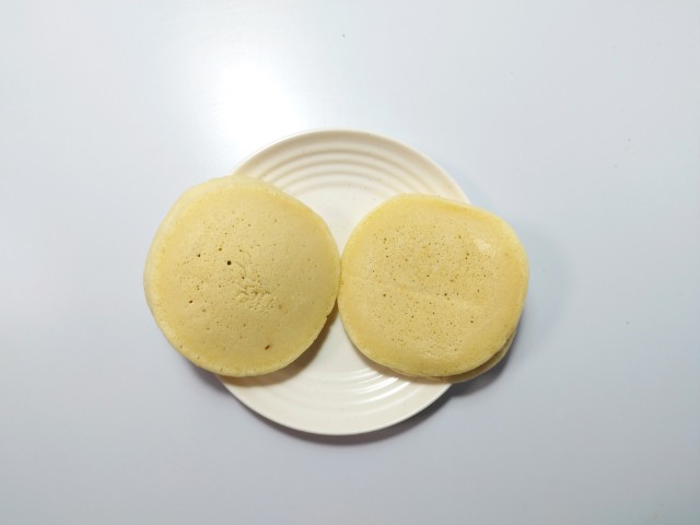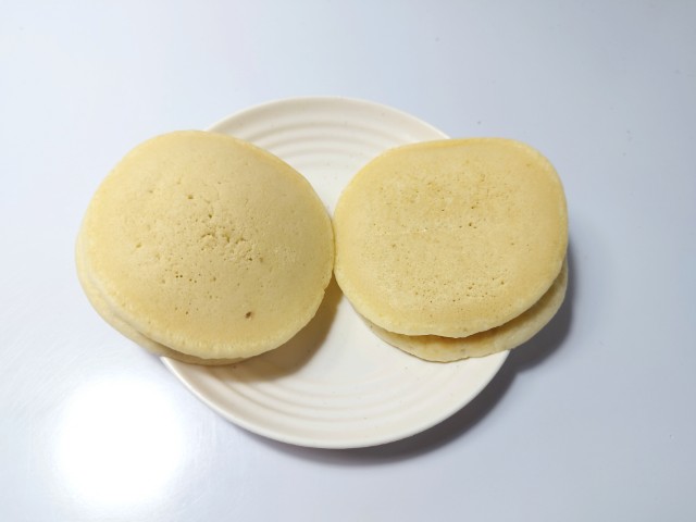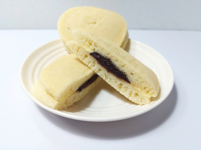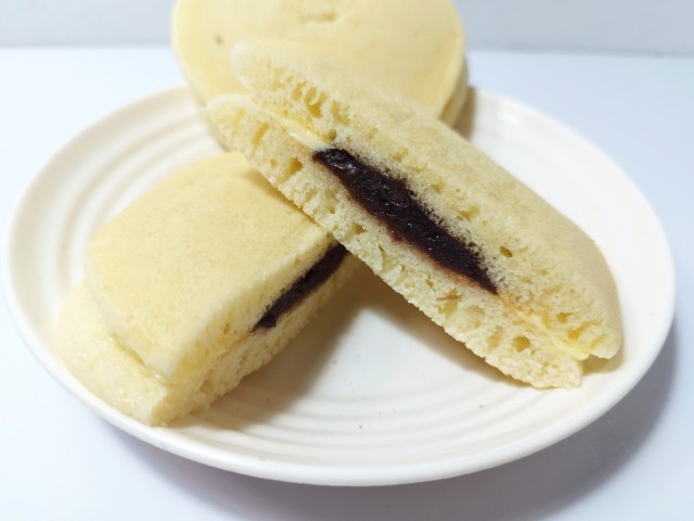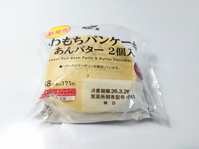 つぶあんバター入りマーガリンを挟んだパンケーキです。以前にふわもちパンケーキ いちご 2個入(2026年1月6日発売)がありましたが、今回はあんバターになっています。そんなふわもちパンケーキですが、生地もちっとした食感ほのかな甘みがあって、これだけでも美味しく食べ進められます。中にはつぶあんバター入りマーガリンが入っていて、つぶあんねっとりとした食感あんの甘味バター入りマーガリンなめらかな食感バターの風味があって、甘じょっぱさを楽しむことができます。2個入ですが、1個手のひらサイズくらいなので、一人でも普通に食べ切れます。ぜひあんバターふわもちパンケーキを食べてみてください。