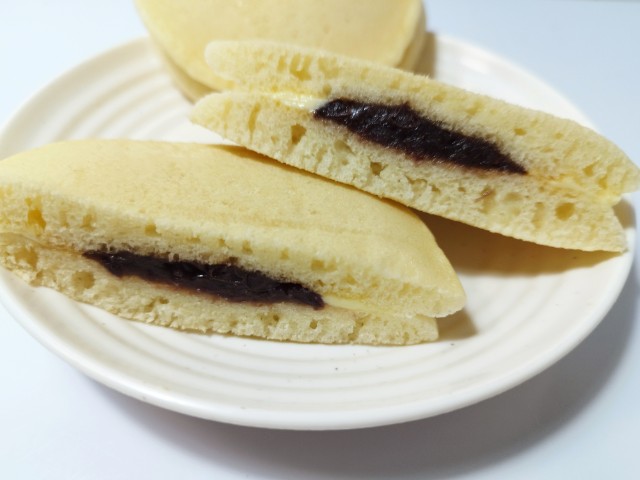 ふんわり・もっちりパンケーキに、風味の良いつぶあんとバター入りマーガリンの相性が抜群。