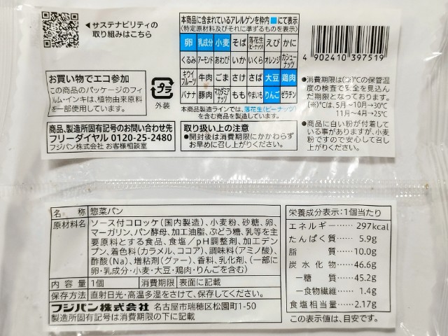 ふんわりとした生地に、ソース付きのコロッケを丸ごと1枚包んだ惣菜パン。