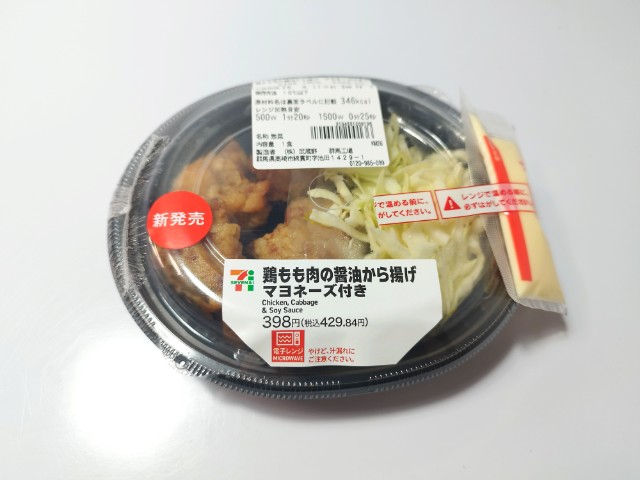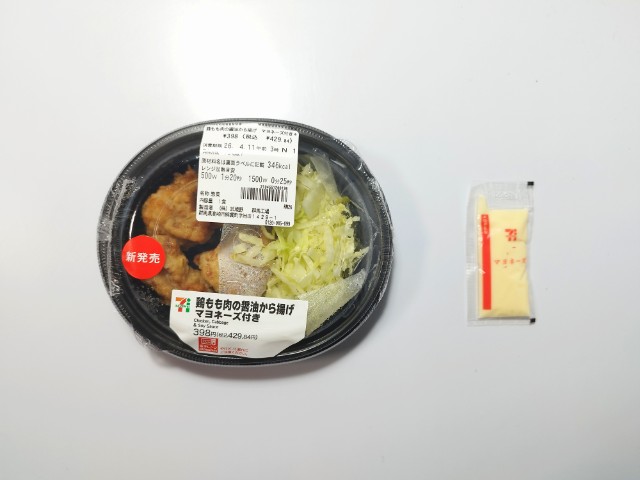 セブンイレブンの今週の新商品「鶏もも肉の醤油から揚げ マヨネーズ付き」を食べてみました。
