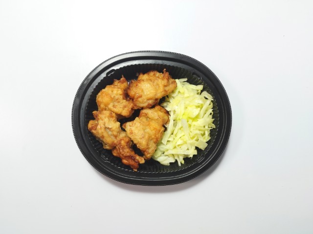 鶏もも肉のジューシーな醤油から揚げにキャベツを組み合わせました。