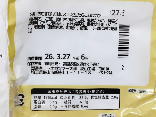 中には紅鮭のほぐし身生たらこが入っています。