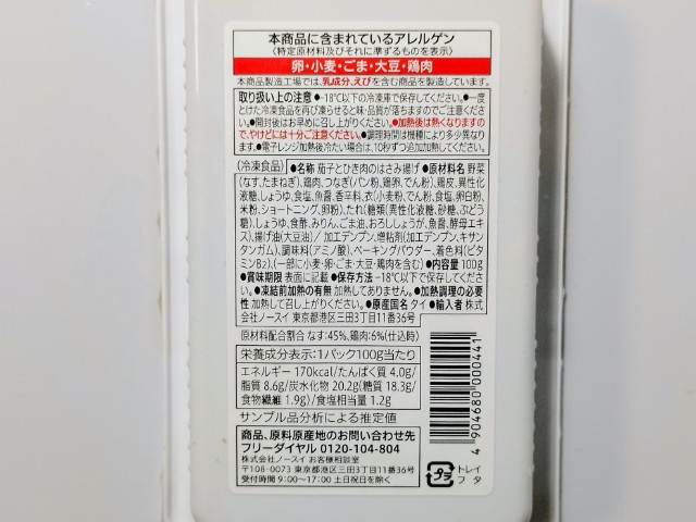 熱量:170kcal、たんぱく質:4.0g、脂質:8.6g、炭水化物:20.2g(糖質:18.3g、食物繊維:1.9g)、食塩相当量:1.2g