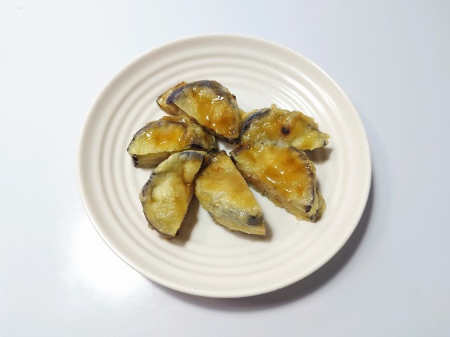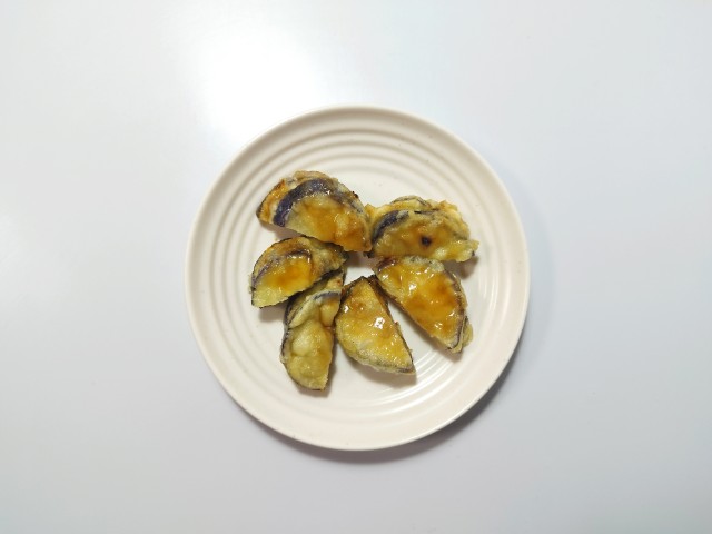 おかずにもおつまみにもなる惣菜シリーズ。さっぱり風味の甘酢タレで仕上げた茄子とひき肉のはさみ揚げです。