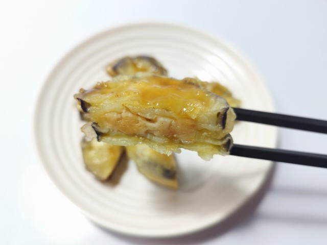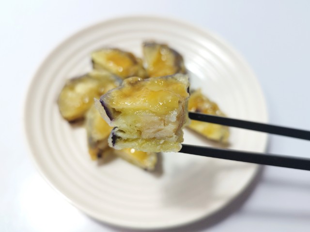 茄子とひき肉のはさみ揚げです。セブンイレブンの冷凍食品で、その商品名に惹かれて買ってみました。そんな茄子とひき肉のはさみ揚げですが、茄子はとろけるような食感と淡泊な味わいで、ハマってしまう美味しさです。間に挟まっているひき肉は鶏の旨味とジューシーな肉質で、茄子との相性抜群です。ポイントは茄子とひき肉のはさみ揚げにかかっている甘酢タレで、なめらかな味わいと甘酢の酸味、醤油の風味で、衣の油っぽさを感じさせず、さっぱりとした後味にしてくれます。6個入で1個はひと口サイズくらいなので、おつまみやご飯のおかずにあと一品追加したい時にピッタリです。ぜひ茄子とひき肉のはさみ揚げを食べてみてください。
